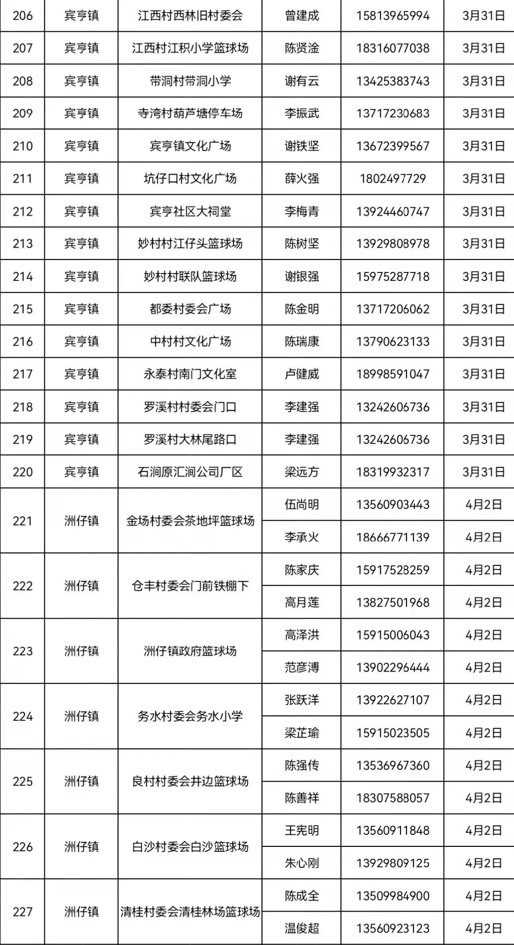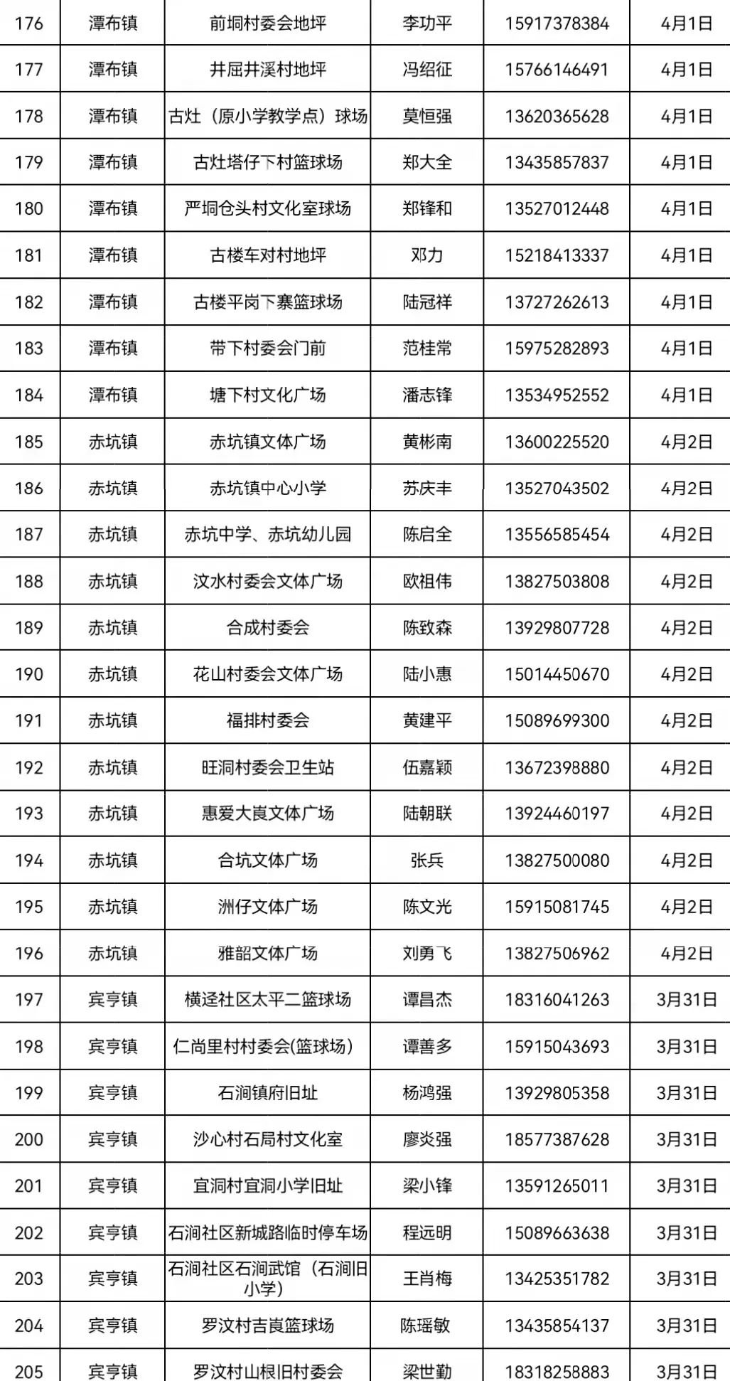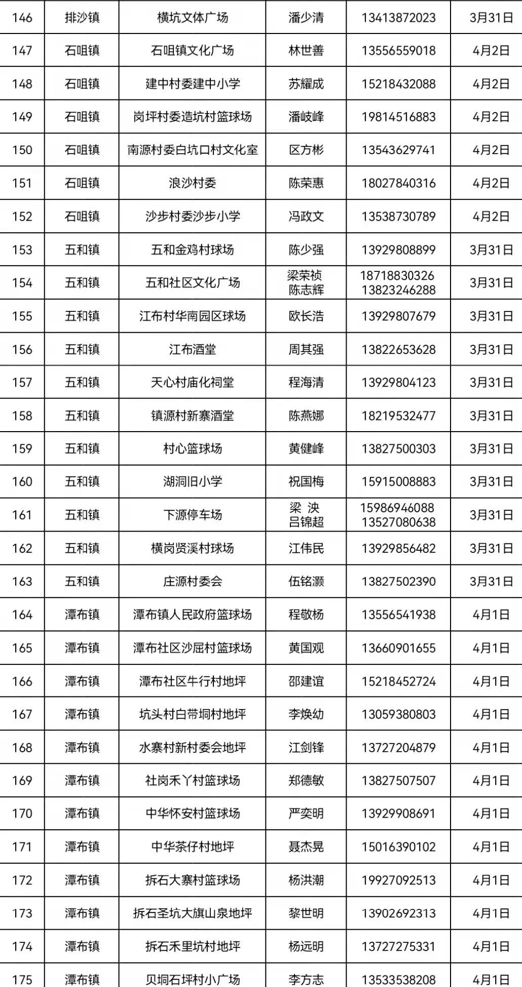 4月2日 南街街道各村委居民、洲仔镇、木格镇、石咀镇、北市镇、赤坑镇、坑口镇辖区内居民。