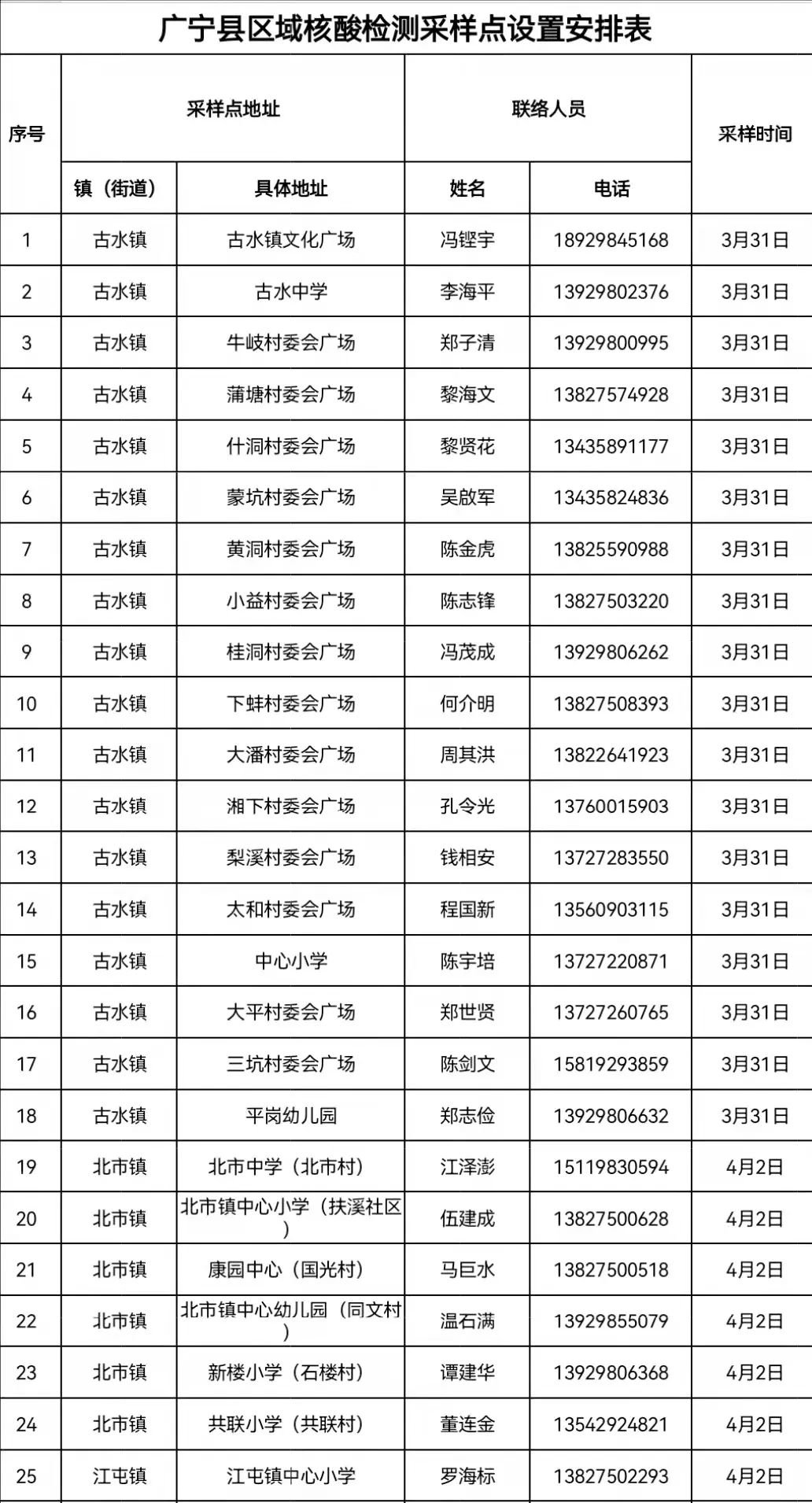 肇庆市广宁县全县分批次开展区域核酸检测(3月31日-4月2日)