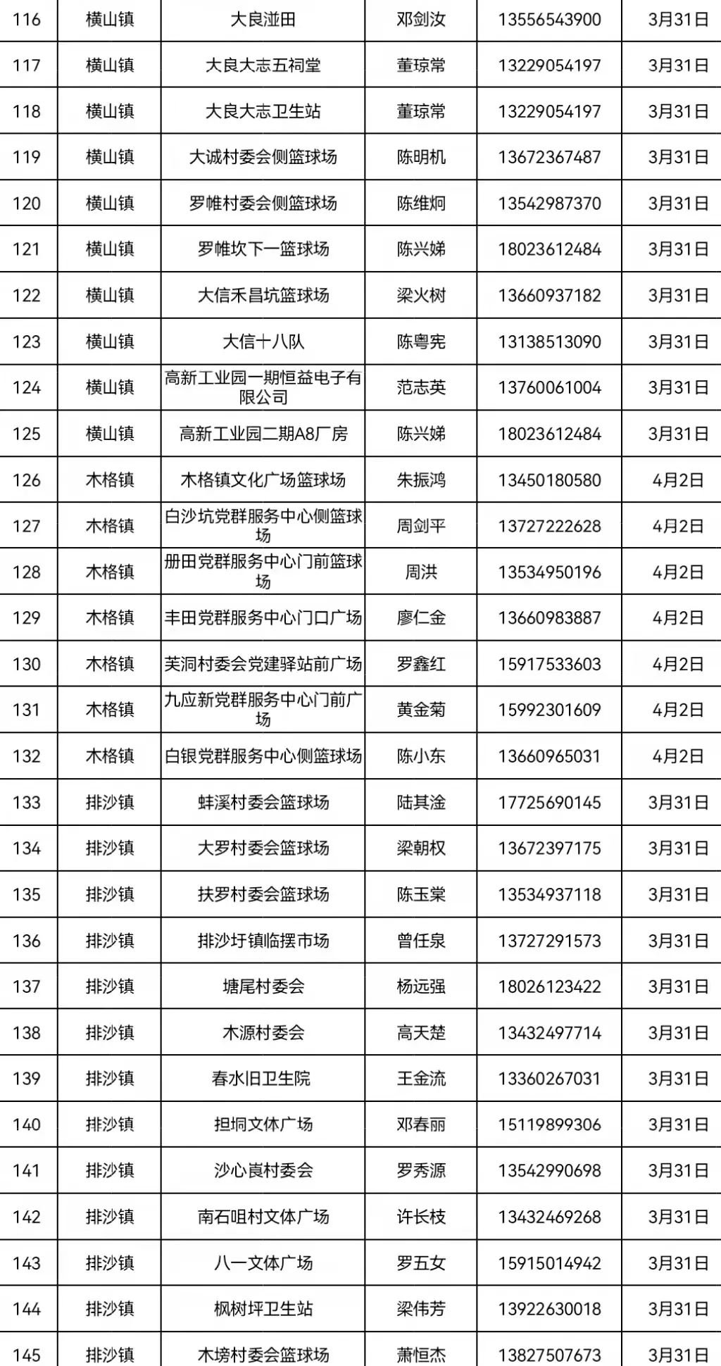 3月31日 五和镇、宾亨镇、横山镇、古水镇、排沙镇辖区内居民;