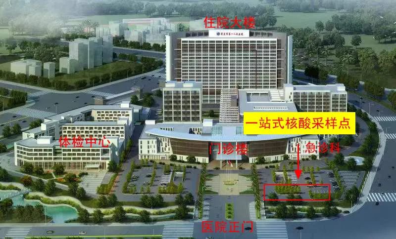 一站式核酸采样点位于急诊停车场旁(即进医院正门口右侧)。