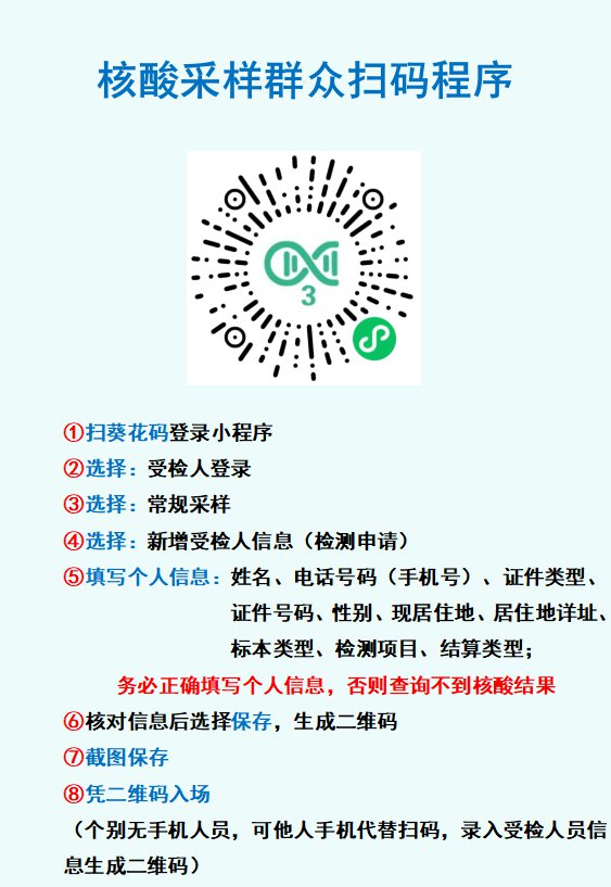 不属于“采样对象”类别的人员,请不要前往,以免造成人员聚集。