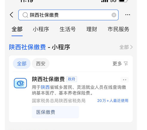 1、支付宝陕西社保缴费小程序
