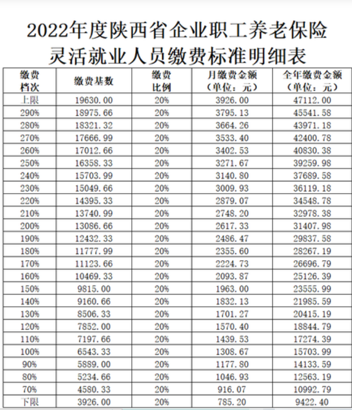 2022年度陕西省企业职工养老保险灵活就业人员缴费