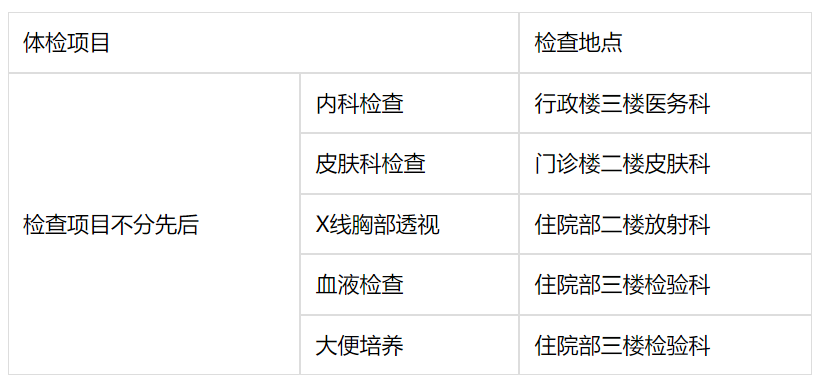 四、办理流程:周一至周五上午空腹至医务科办理登记后,持医务科开具的导检单至以下科室体检: