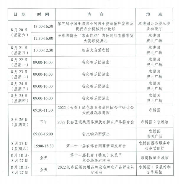 2022年长春农博会时间安排表(2020年长春农博会时间安排表)