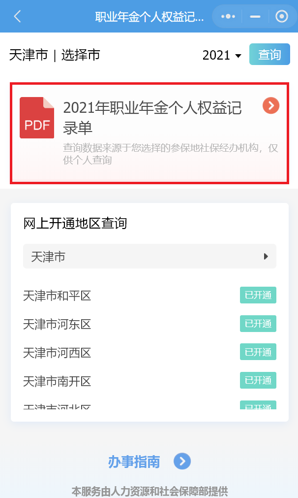 天津职业年金个人权益信息查询/打印方式一览