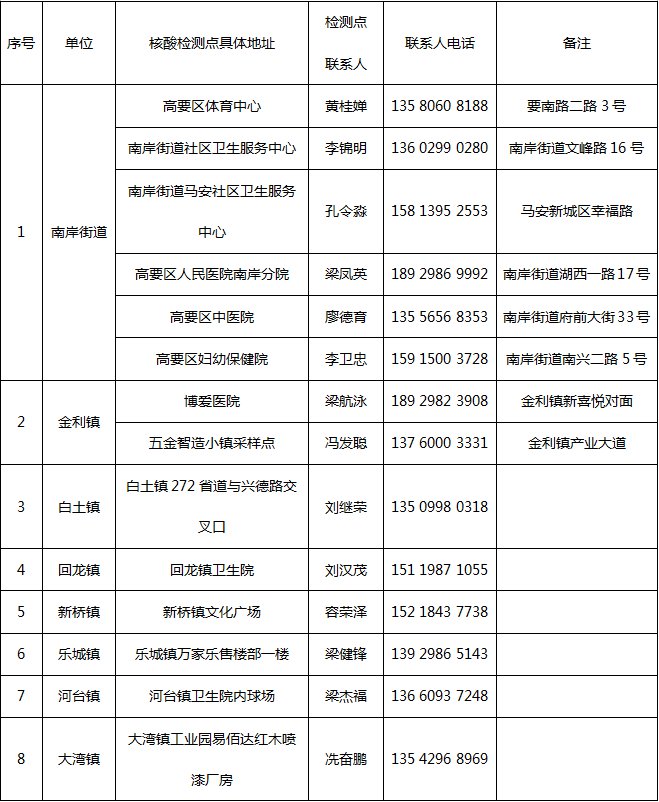 肇庆市高要区重点人群免费核酸检测时间地点(2月8日-2月9日)