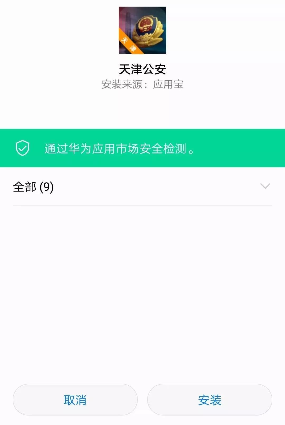 步骤1:在手机应用市场(软件下载工具)内均可搜索并下载“天津公安”手机APP程序(以下简称:民生平台APP)。下面以安卓系统手机为例,介绍通过“应用宝”下载民生平台APP的方法。