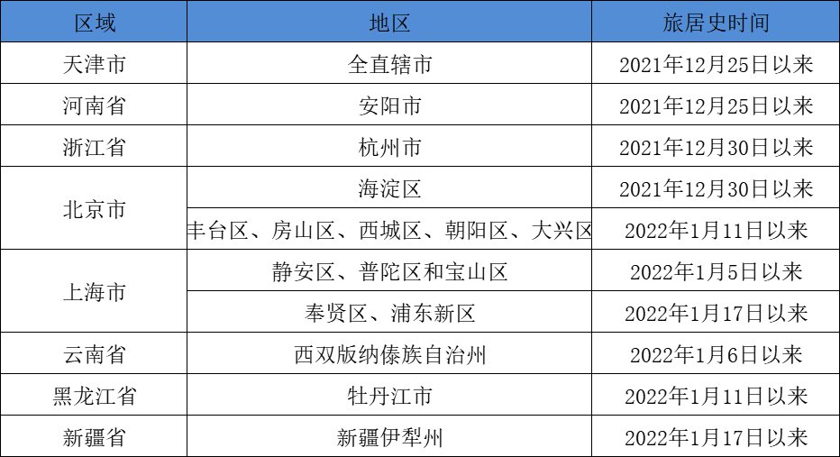· 2022年1月11日以来有北京市丰台区、房山区、西城区、朝阳区、大兴区旅居史的来(返)肇人员