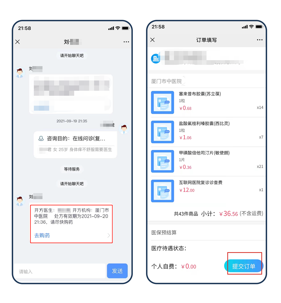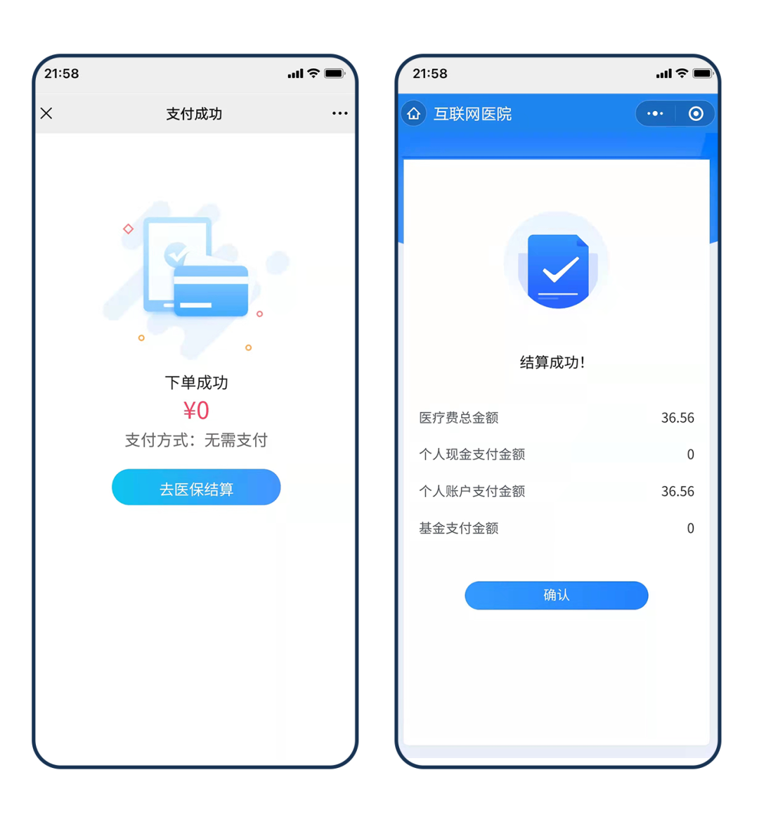 提交订单后,进行医保支付校验,即可完成医保结算。