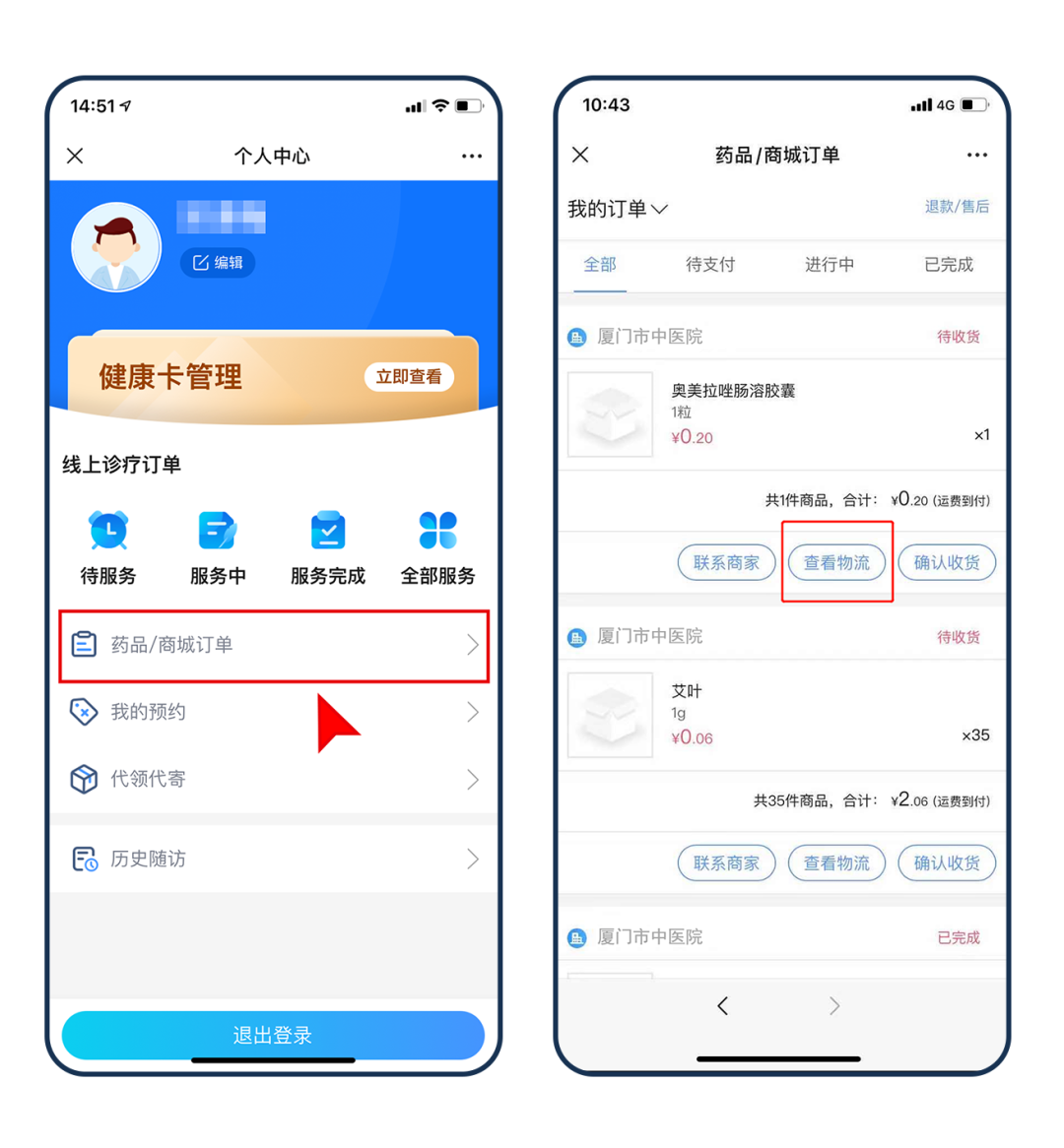 支付成功等待配送,您的订单及物流信息可以在公众号【更多】-【个人中心】-【药品/商城订单】中查看。