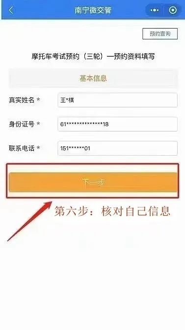 第六步核对相关信息确认无误后,点击“下一步”提交即可完成预约。