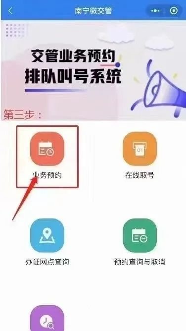 第二步点击进入“交管业务预约”进入交管业务预约排队叫号系统界面;