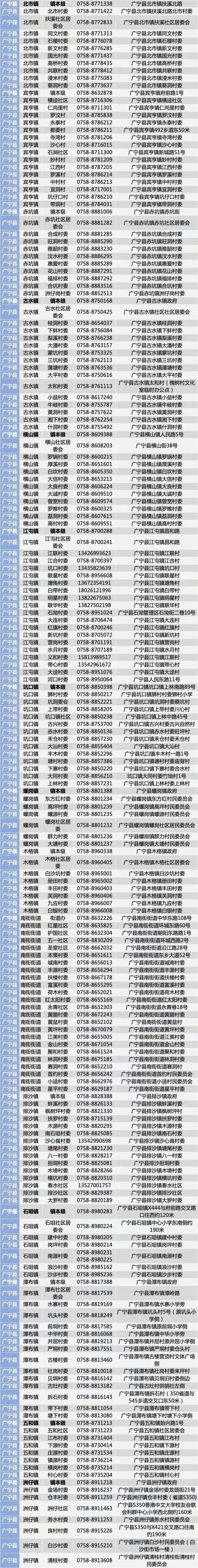 肇庆市广宁县社区(村委会)电话