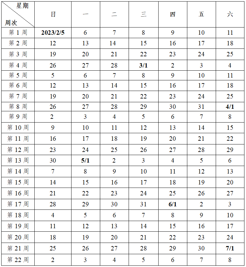 1.全市中小学于2023年2月4日-6日开学(注册、交费、报到),2月7日正式上课。(注:2月5日是元宵节)