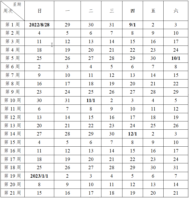 1.全市中小学于2022年8月27日-28日开学(报到、注册、交费),8月29日(星期一)正式上课。