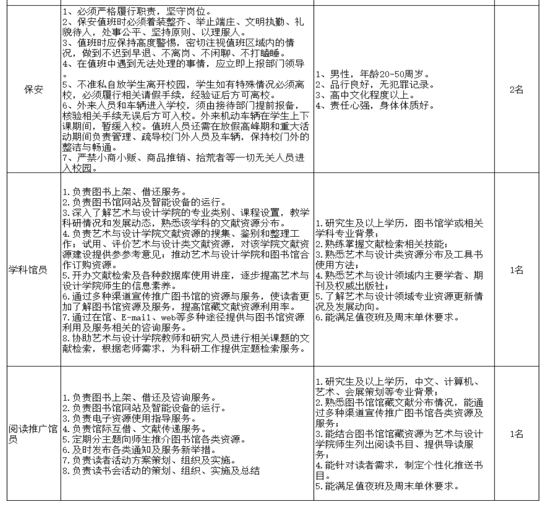 2.图书馆(档案、校史馆)招聘2名工作人员。