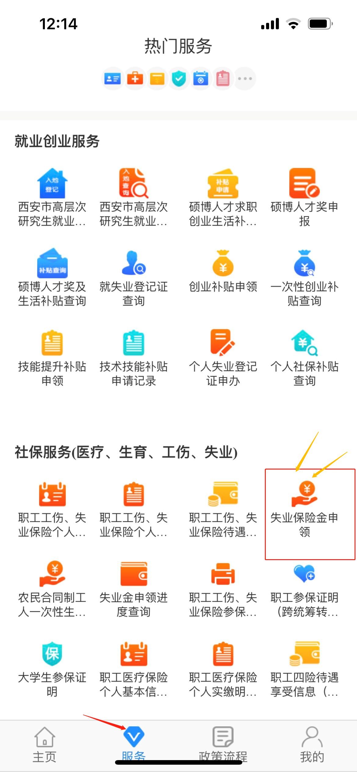 注意:下载并登陆后,验证个人失业信息,点击下方【服务界面】,进入失业保险金申领页面!