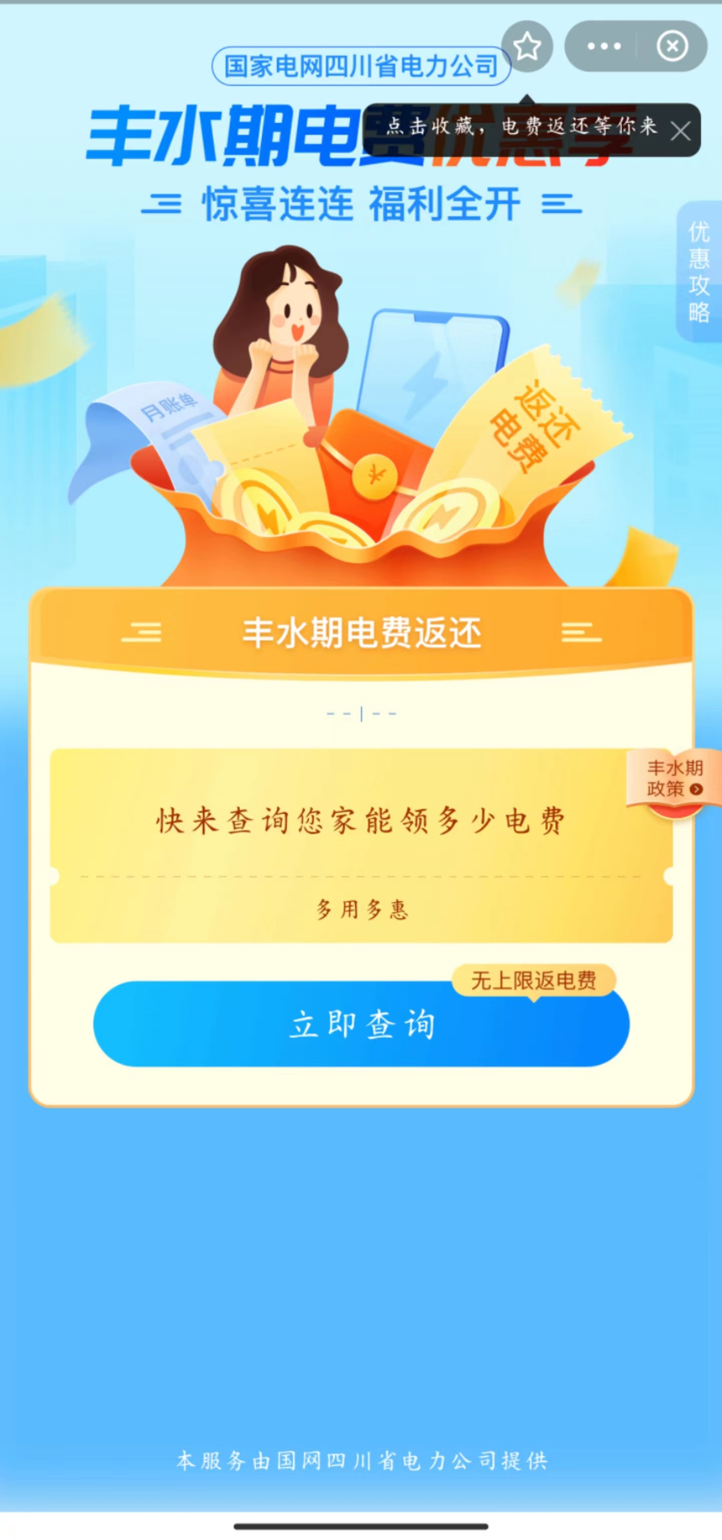 四川电力丰水期电费返还领取攻略