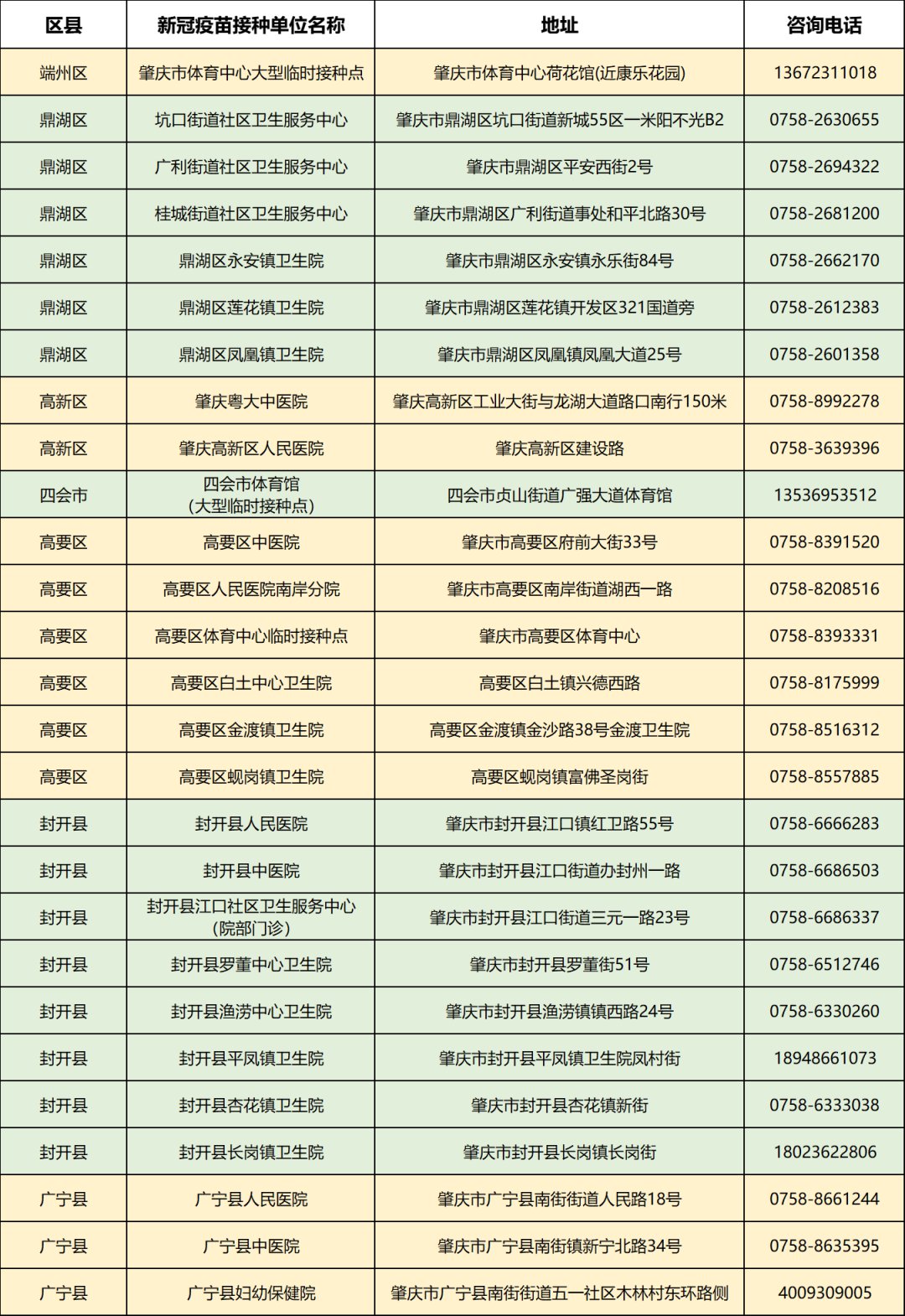 肇庆市腺病毒新冠疫苗(只接种1针的新冠疫苗)加强针接种点: