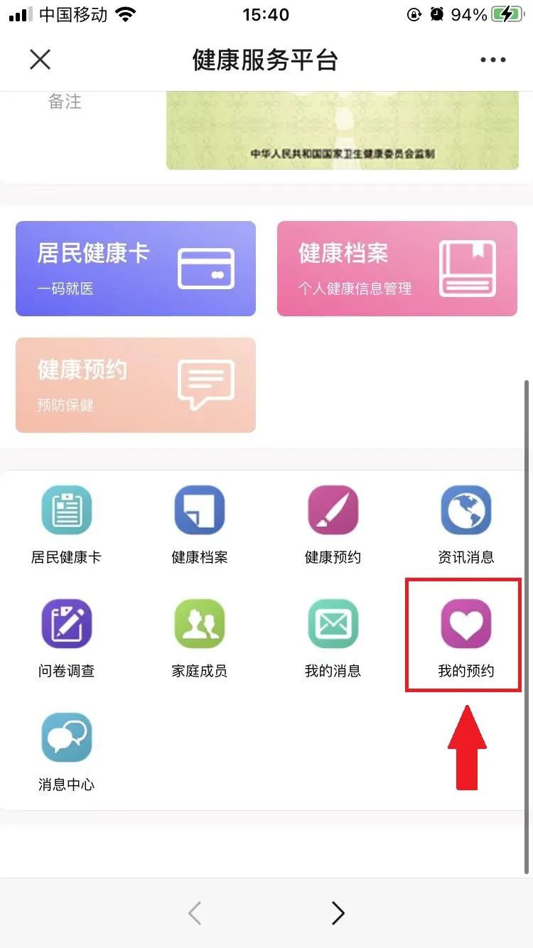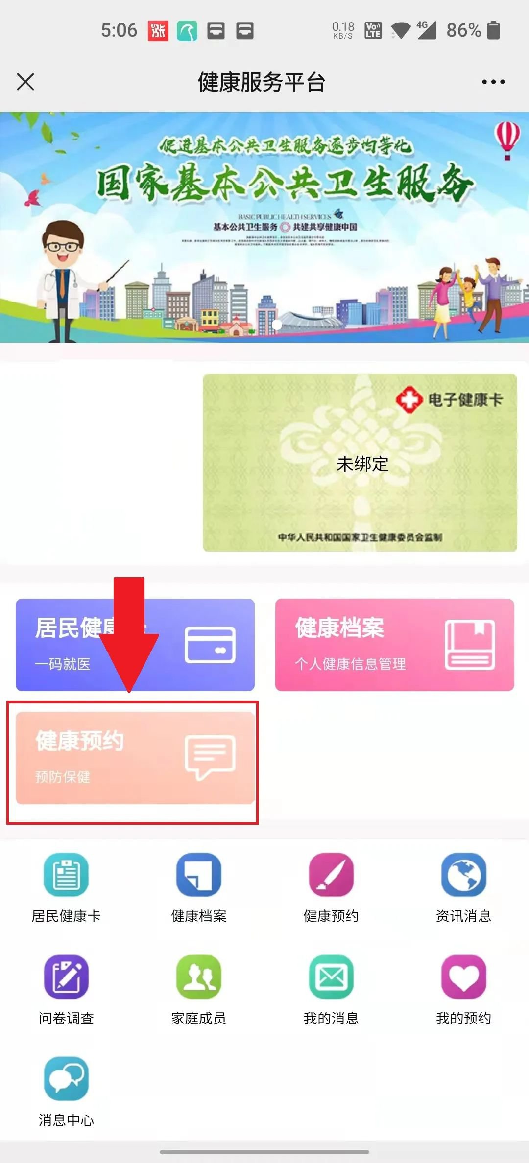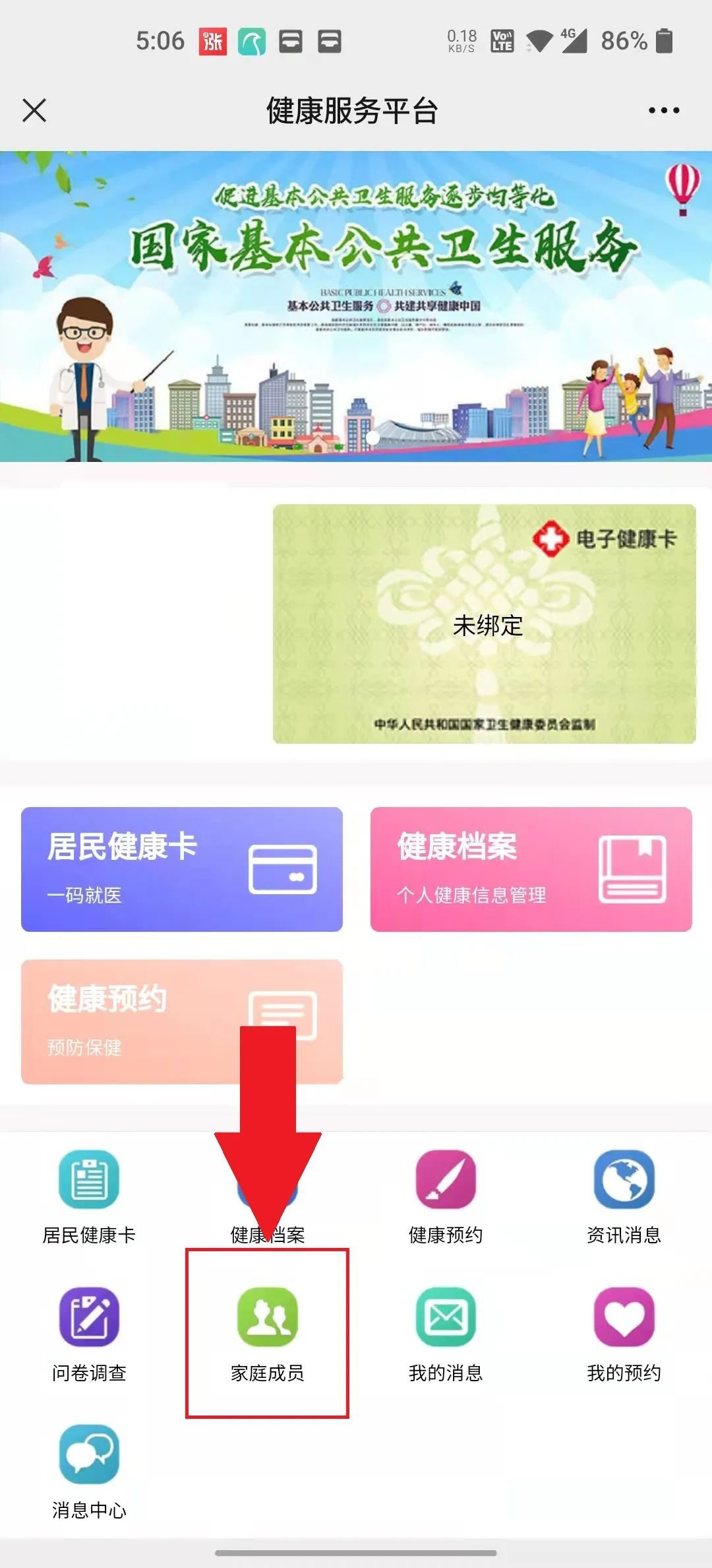 第三步:添加成员后,点击“健康预约”,选择家庭人员