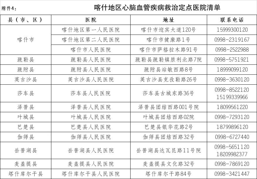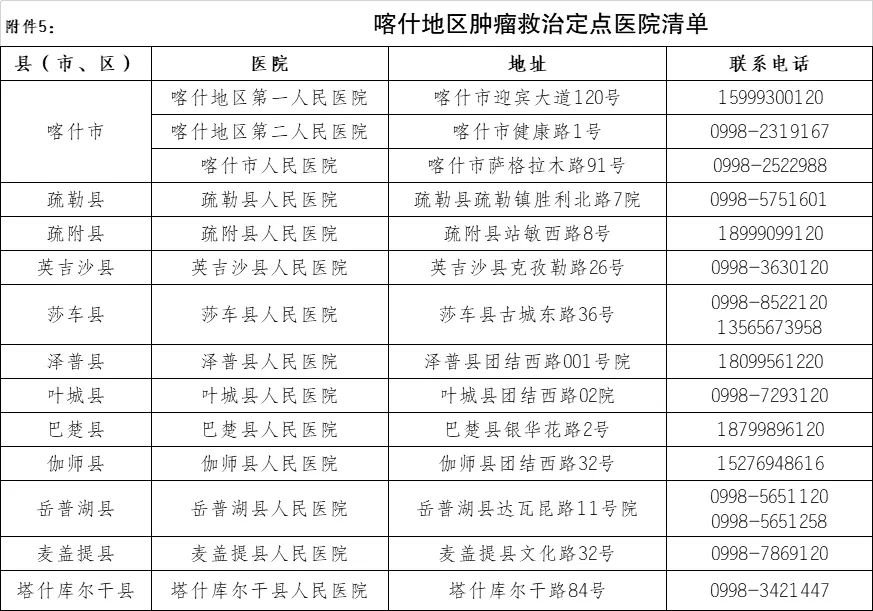 为进一步满足疫情防控期间群众基本就医需求,切实做好心脑血管、孕产妇、儿童、肿瘤等急危重症患者的医疗救治工作,现将喀什地区急危重症患者定点救治医院信息更新公布如下,并提出以下要求: