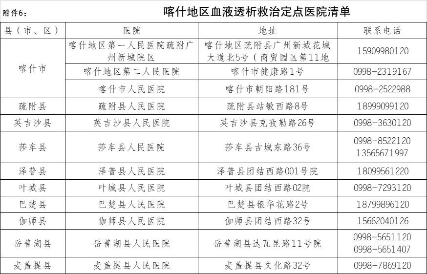 一、在疫情期间新增的血液透析患者,按照本通知公布的所在辖区定点医疗机构进行就诊;原有血液透析患者,仍在原既往血液透析医院就诊;定点医院需安排专人24小时接听值守公布的电话,方便各族群众及时就医。