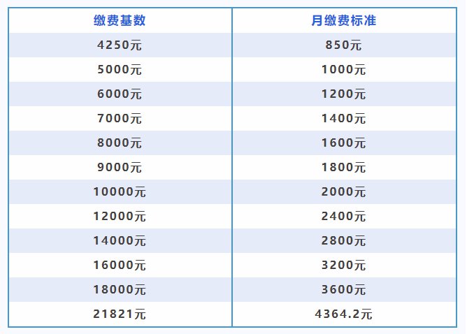 2022年7月1日起,缴费基数为4250元/月,缴费标准为392.5元/月(含大病医疗救助费10元/月)。