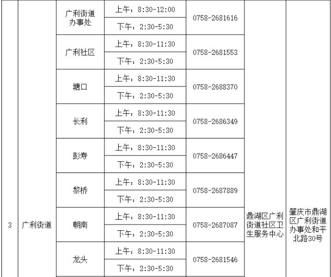 一、肇庆市鼎湖区广利街道儿童新冠疫苗接种点地址电话一览