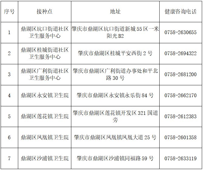 附件:鼎湖区儿童新冠疫苗接种定点单位
