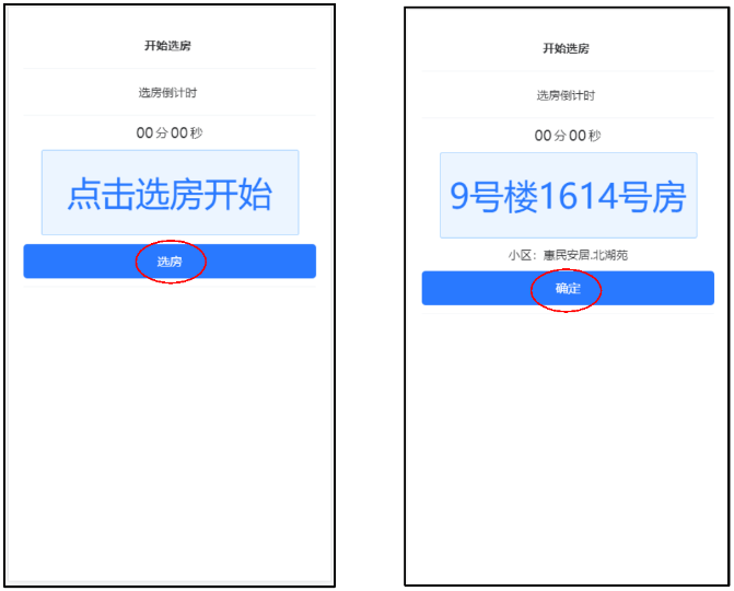 5、点击“选房”开始选房,点击“确定”选中房号。