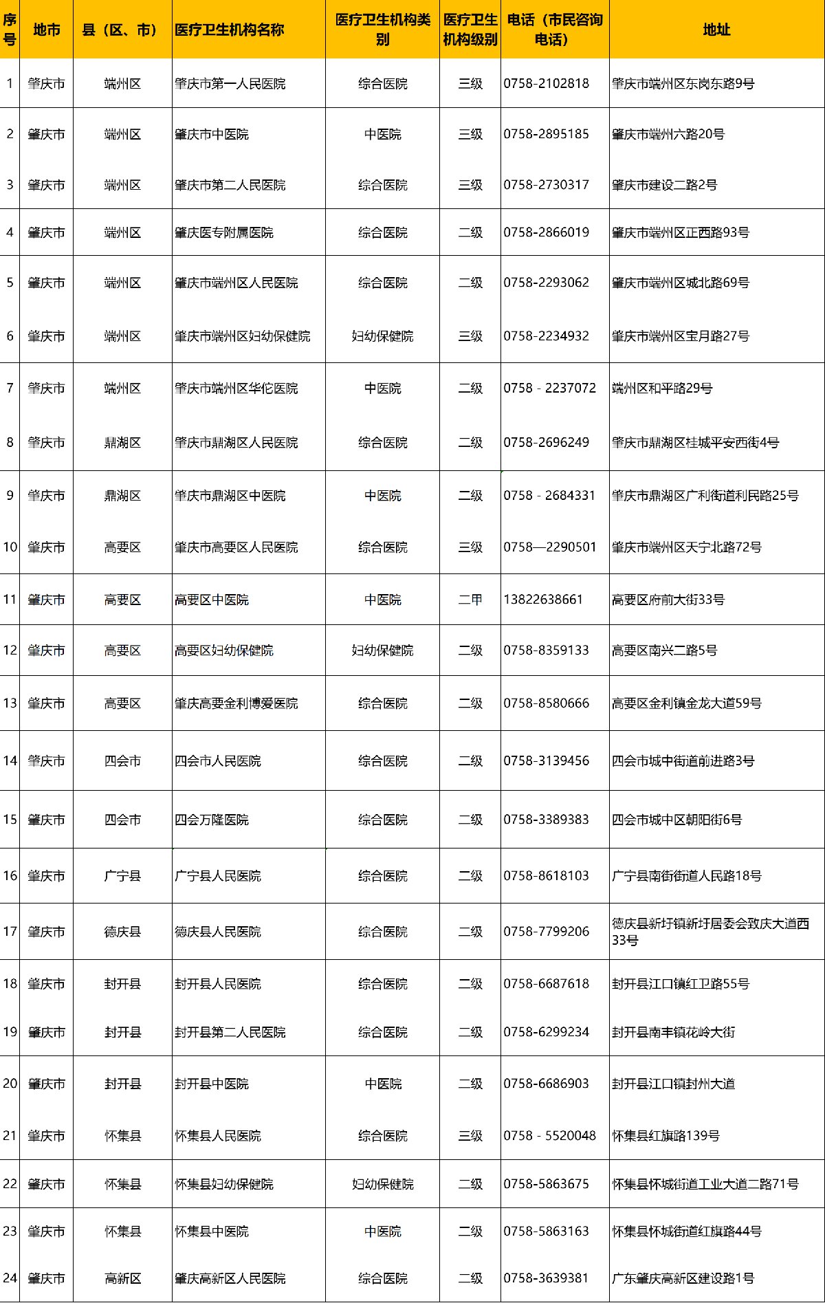 肇庆市辖区内对外开放核酸检测机构情况表
