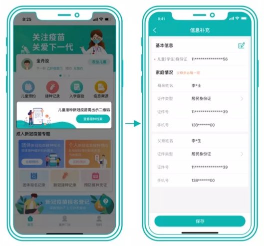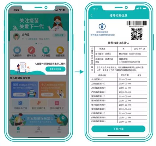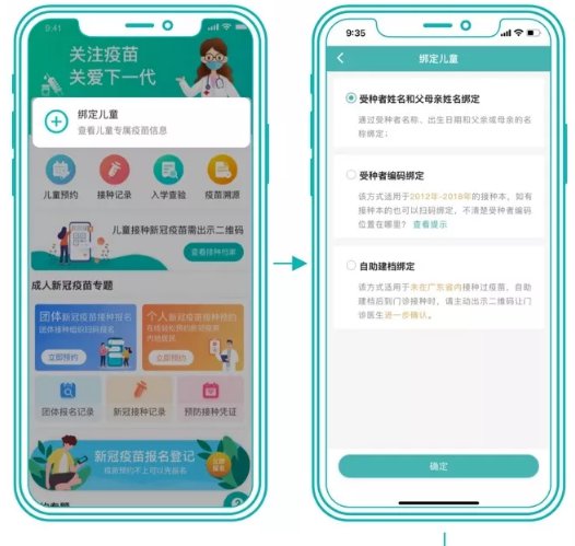 监护人通过粤苗APP或粤健通微信小程序预先登记孩子和家长的信息,绑定孩子在省疫苗系统中已有的档案,并自助完善档案中孩子身份证号码、父母姓名和身份证号码等必需信息,生成接种档案信息二维码。