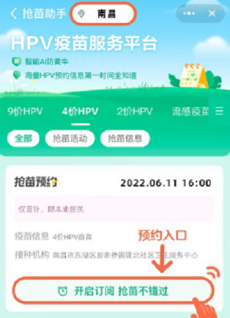 疫苗开放预约时,订阅按钮将变为预约入口,点击立即预约,往下滑找到预约场次-点击订阅。