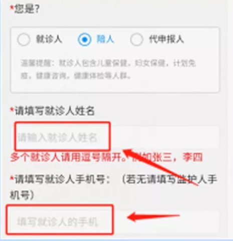 当本人无法自行填写时,可以由亲友、工作人员代填写,填写代申报人的基本信息后选择“代申报”,填写就诊人姓名、联系方式即可进行代申报。