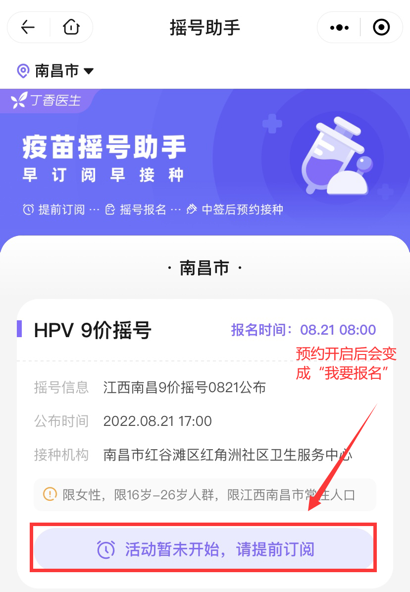 8月21-22日南昌红角洲社区卫生服务中心九价四价摇号通知