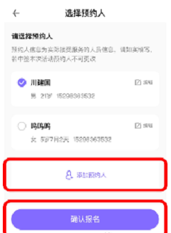 3、添加预约人信息(注意须符合接种要求)后选择,点击“立即报名”