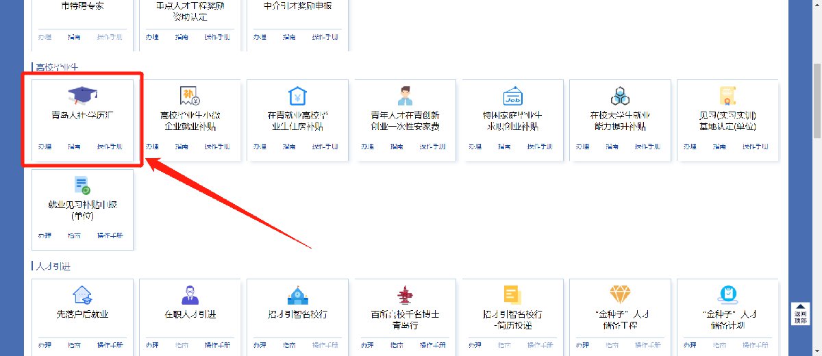 以上两种情形中按专科及以上学历层次毕业生和在校生申请的,应先通过“青岛人才网”或“青岛人才”微信公众号进入“青岛人社·学历汇”模块进行学历学籍、学位等信息确认。【点此进入青岛人社·学历汇】
