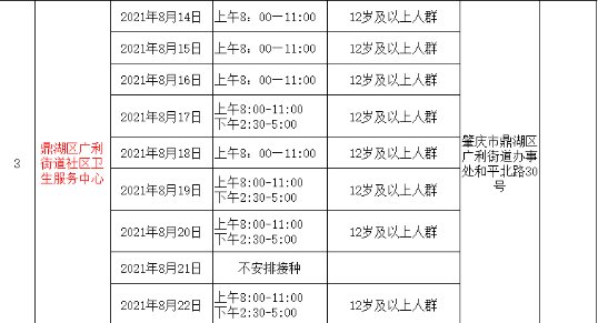 鼎湖区广利街道8月14日---8月22日新冠疫苗接种安排