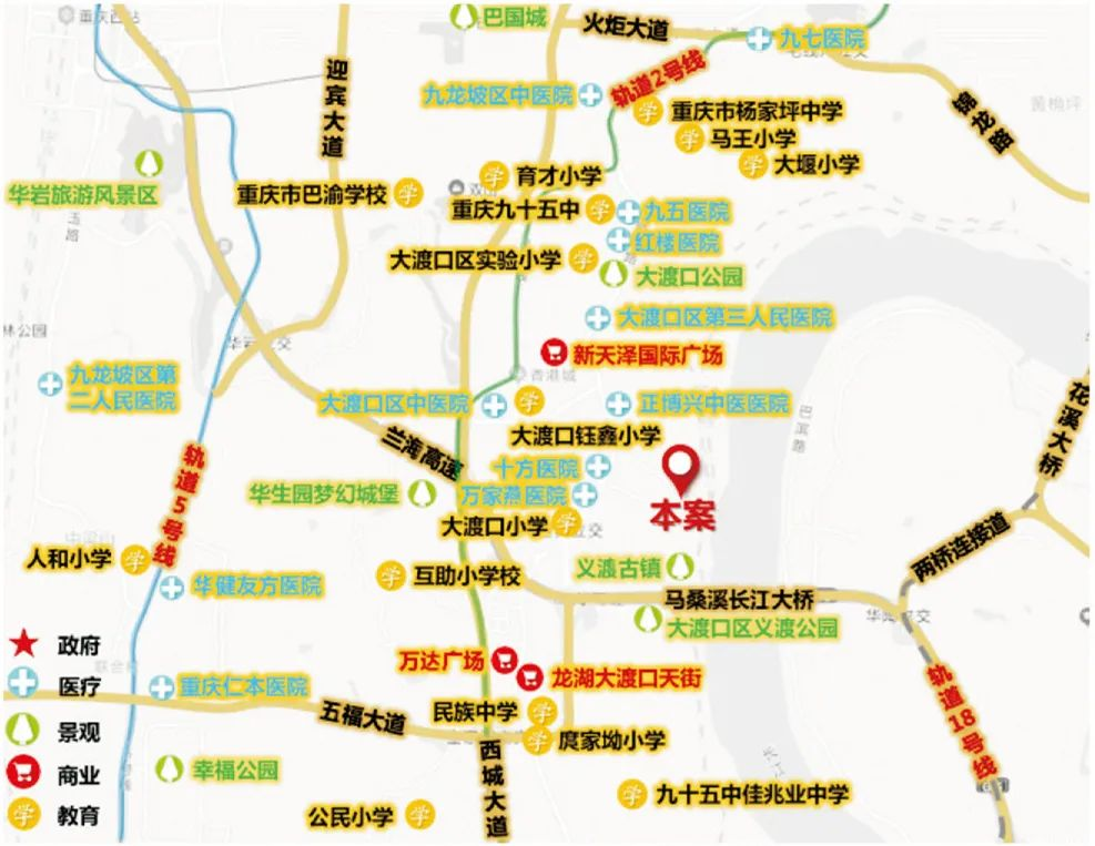商业:龙湖大渡口天街、万达广场、华宇锦绣广场。