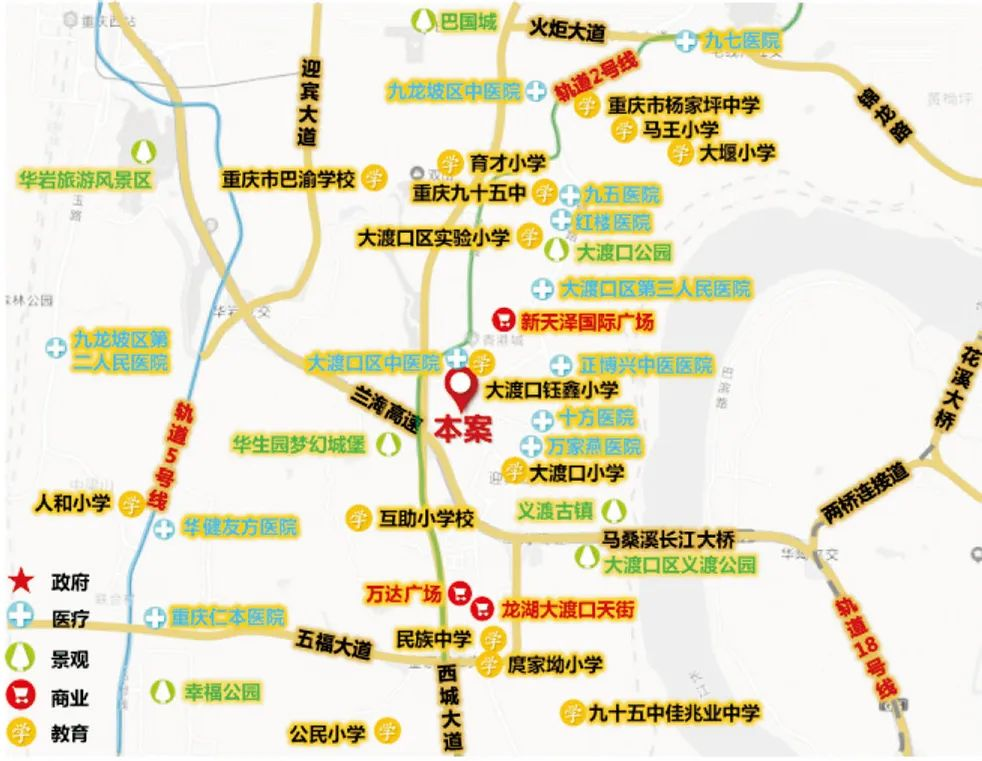 医疗:逸景中医院、国恒康复医院、重庆仁本医院、大渡口区人民医院。