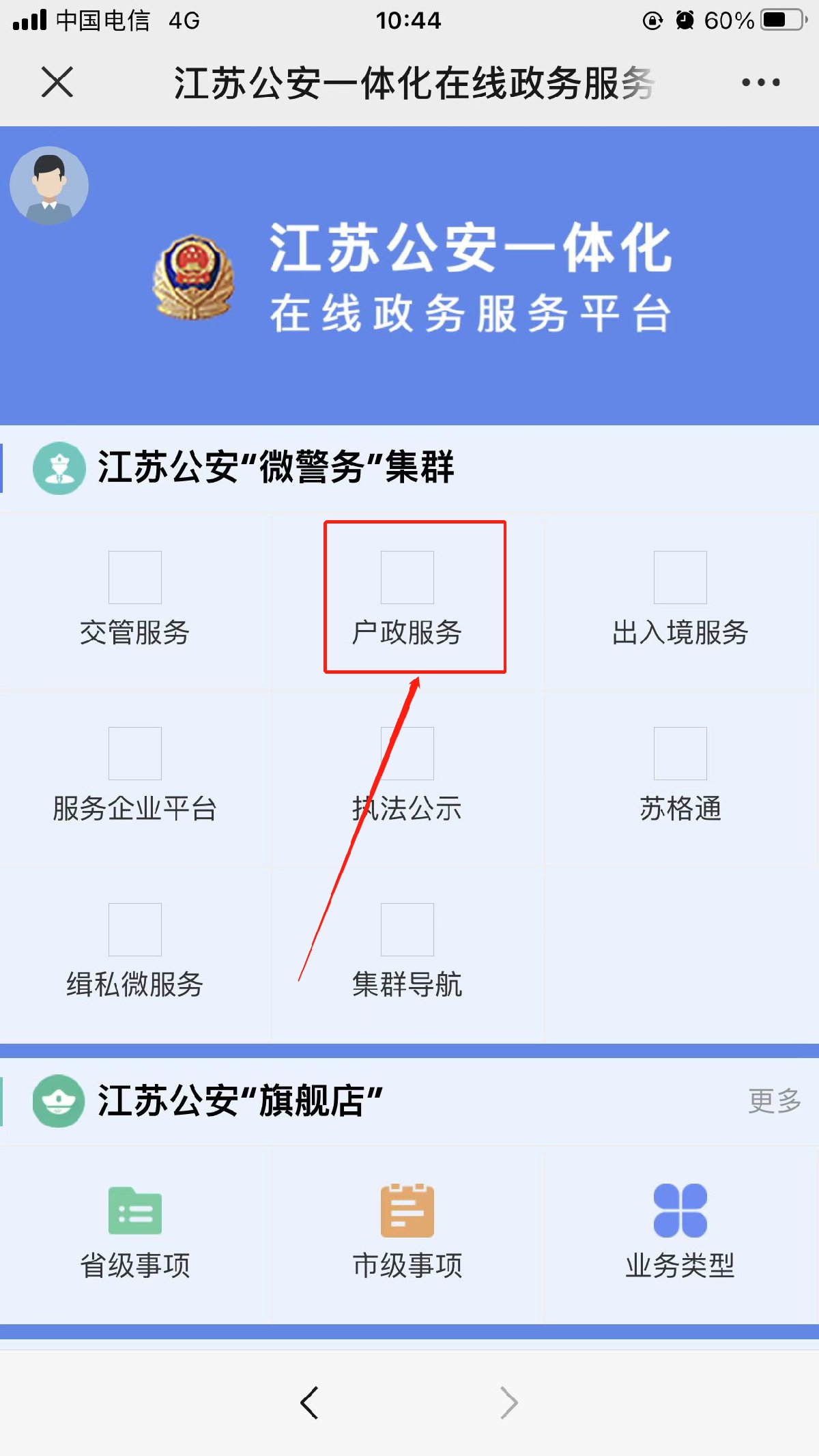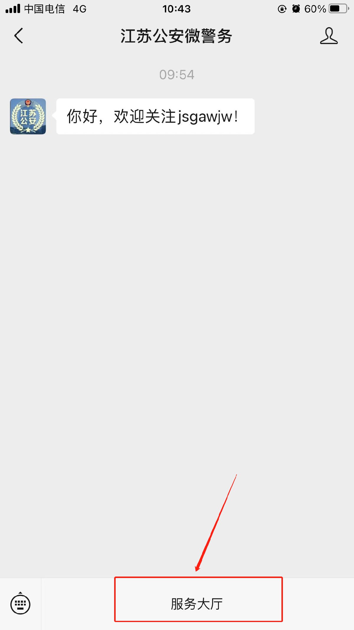 2.点击下方【服务大厅】,进入江苏公安一体化在线政务服务平台;