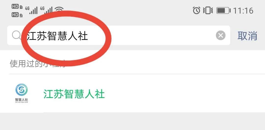 1、打开手机微信或支付宝,搜索“江苏智慧人社”。