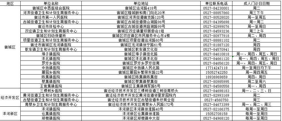 宿迁市区成人预防接种门诊