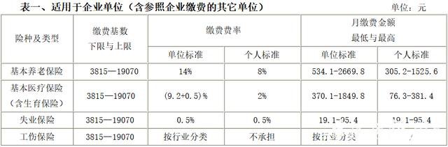 缴费基数上限标准:19070元;