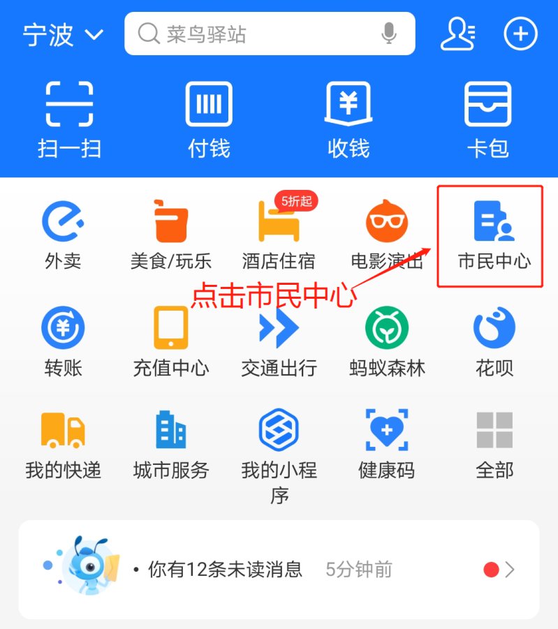 1、申领电子社保卡(以支付宝为例)1、打开“支付宝”,点击“市民中心”