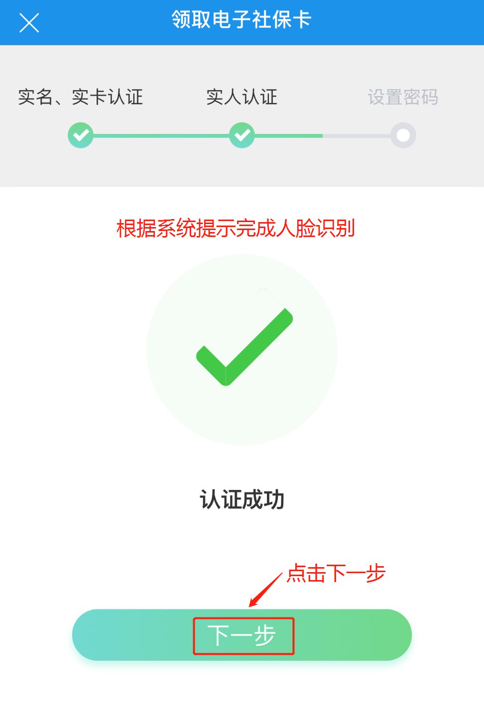 5、人脸识别。根据系统提示完成人脸识别。
