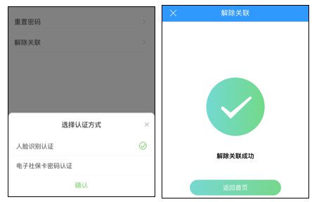 点击【我的】-【设置】-【解除关联】,通过认证方式后,即可解除关联。
