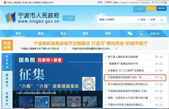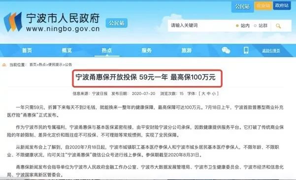 宁波市人民政府官网上有甬惠保