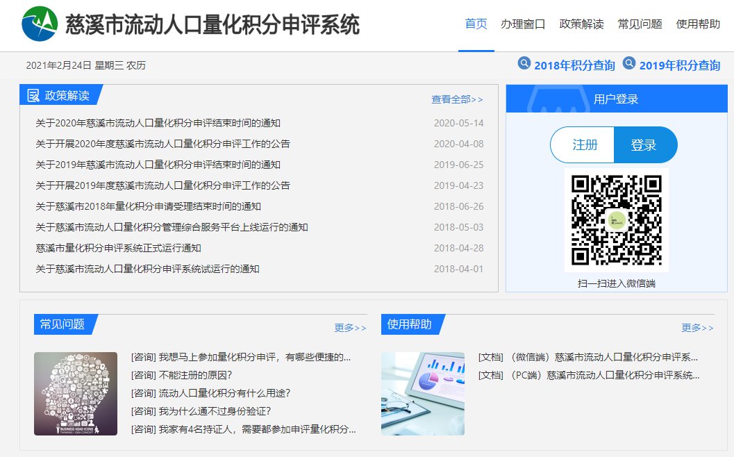 根据《关于认真做好2021年度慈溪市流动人口量化积分申评工作的通知》(慈流领办〔2021〕3号)文件精神,2021年度慈溪市流动人口量化积分系统将于3月10日正式上线。